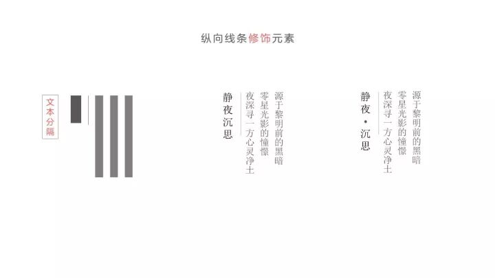 讲完了横纵向的文本分段,当然要将其用于实际的制作之中。可以使用单一的一种形式,也可以将几个分段形式进行组合,达到我们想要的效果。