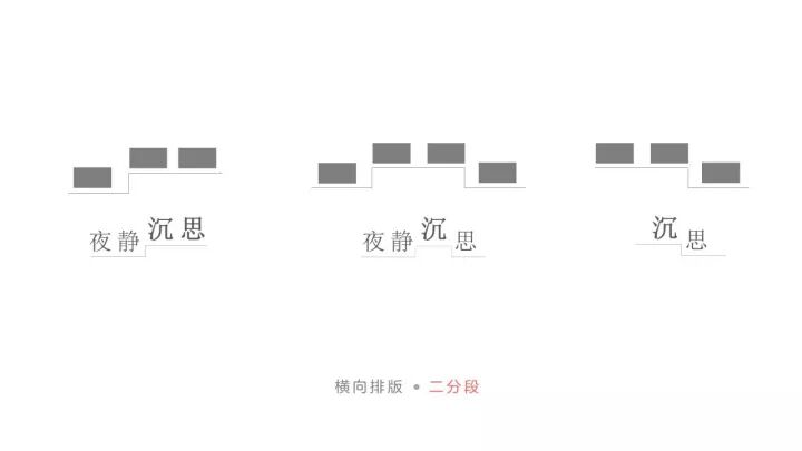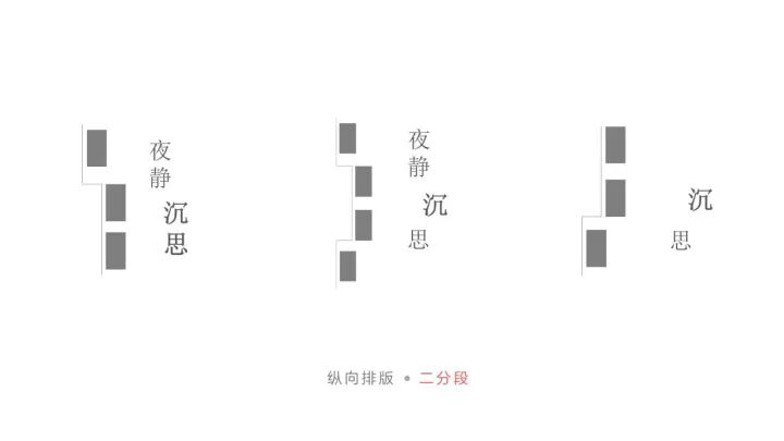 下图中列举了三种方式,当然不仅仅只是这三种形态,可以通过设置文字大小、文字形态等方式来增加二分段排版的多样化。