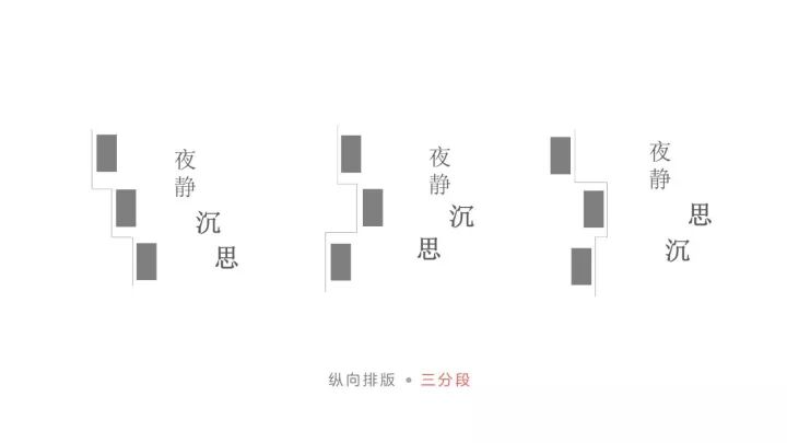 三分段和二分段相同,当然因为多了一个分段,因此其变化形态更多。同样可以通过设置文字大小、形态等方式实现三分段文本的多样化。