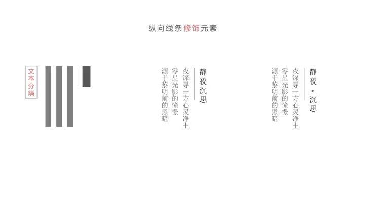 纵向线条的修饰和横向相同,只是需要说明的使,纵向的排版之中需要注意文本的阅读方向,是右到左,还是左到右,需要进行说明和指示。