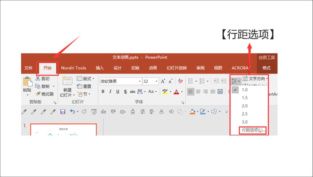 >选中整个文本框(注意:是选中整个文本框,不能让光标在文本框中闪烁。如果光标在文本框中闪烁的话,也没关系,我们只需要【Ctrl+A】选中文本框中所有的点就行了)【开始】【行距】(这个选项在一个非常不起眼的位置上,大家等会儿看下面的图示)【行距选项】>在【行距】的下拉条中选择【固定值】,数值设为“0磅”,点击【确定】。此时我们复制出那么多行的点,就只浓缩成了一行,也就是凝聚成了一点。