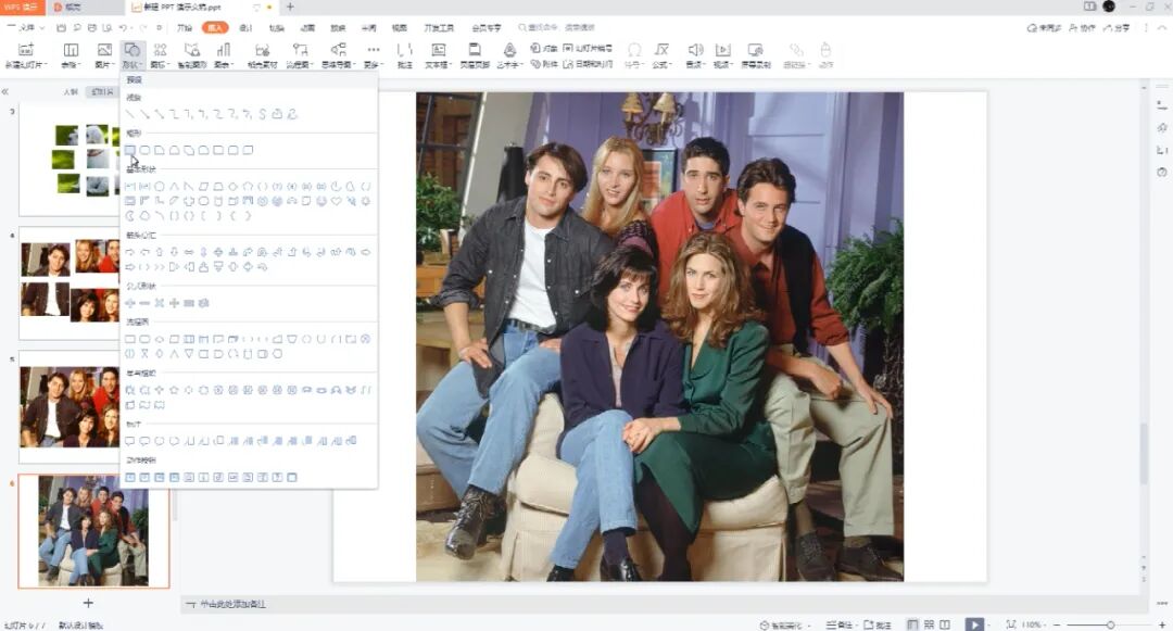 1、现在PPT中插入一张图片,点击插入的形状。