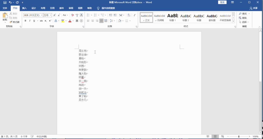 第一步:打开Word,在文档中输入姓名, 注:所有姓名大纲级别都为标题1,然后保存并关闭文档。