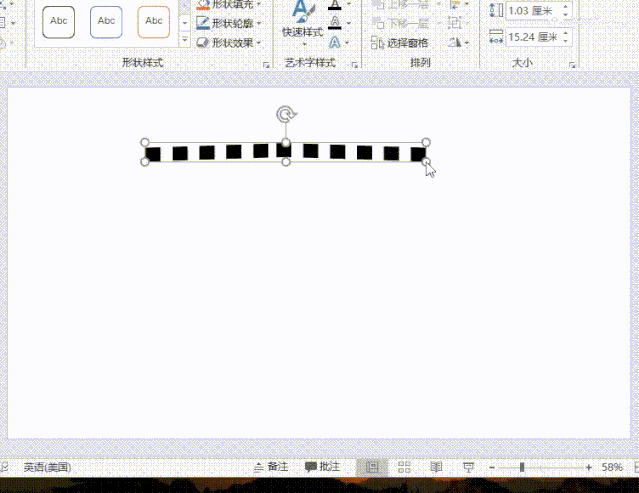 3、这时候,我们看到破折号已经发生了弯曲变化,我们再对其进行等比放大,将其移到合适的位置,在“开始”里选择“字符间距”-很紧,让文本的间距小一点,提升视觉效果。
