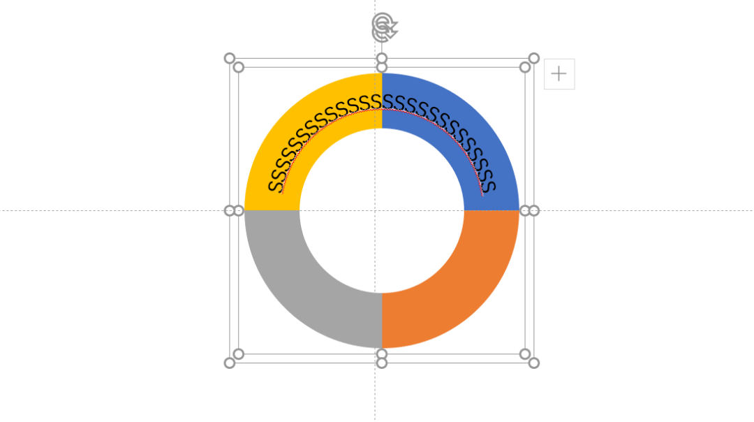 选中饼图的组合和这个无填充的圆形水平垂直居中对齐(注意如果最开始不是1:1:1:1的饼图比例,这一步可能需要手动对齐),最后缩放无填充的圆形至合适大小,使文字居于环形中间即可。