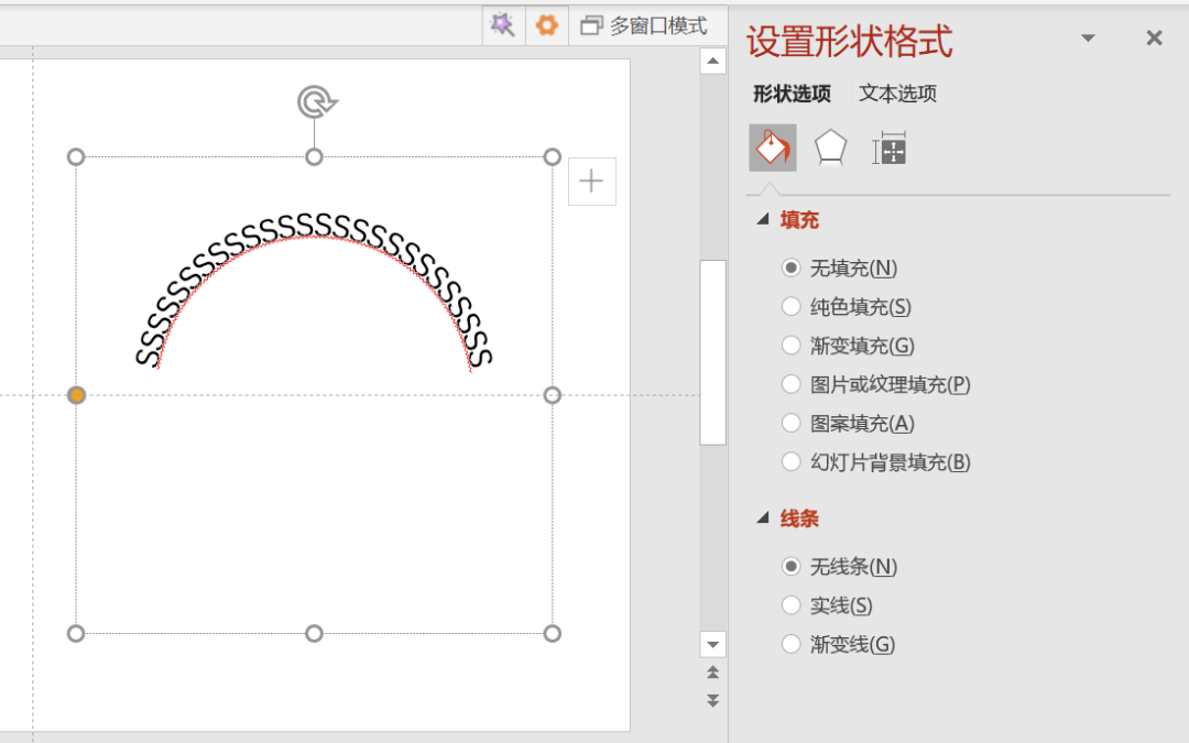 ③环形文字部分。目前已有常见思路是给纵横比为1:1的文本框添加一个“跟随路径”的“文本转换”,再进行复制旋转操作,如下图:
