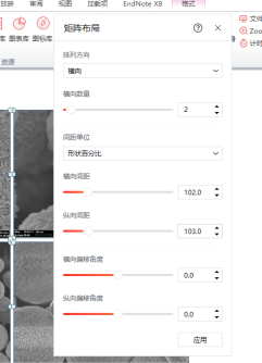 (二)初步排版。选中四张图,点击islide插件→设计排版→矩阵布局,调整横向数量为2,横向间距为102,纵向间距为103,点击应用。