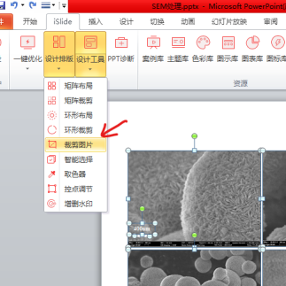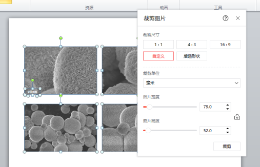 (四)去掉原图比例尺。选中四张图,点击点击islide插件→设计排版→裁剪图片,调整至看不到原图比例尺。