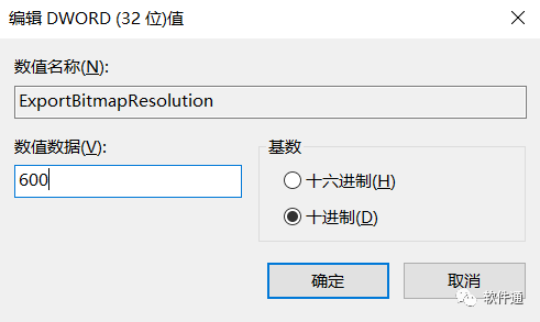 数值名称不要改动,基数选择十进制,数值数据改为600,这样的设置基本上满足高质量论文期刊的图片要求了,最后点击确定完成操作。