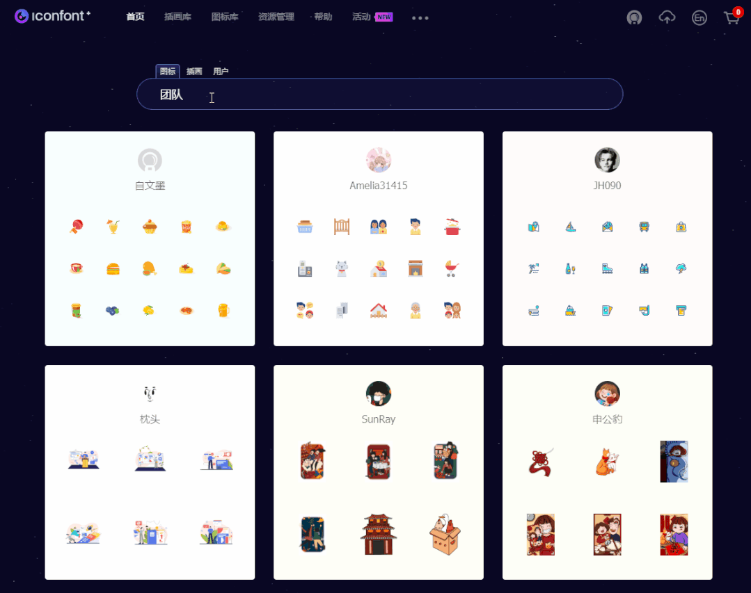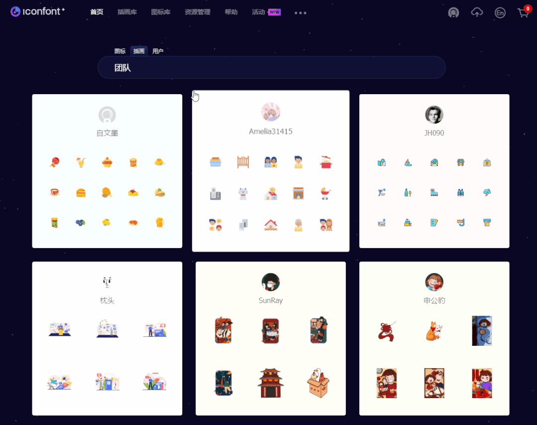 我们也可以搜索任意插画,下载PNG图或者SVG矢量图,但是PNG图的不能更改指定颜色。