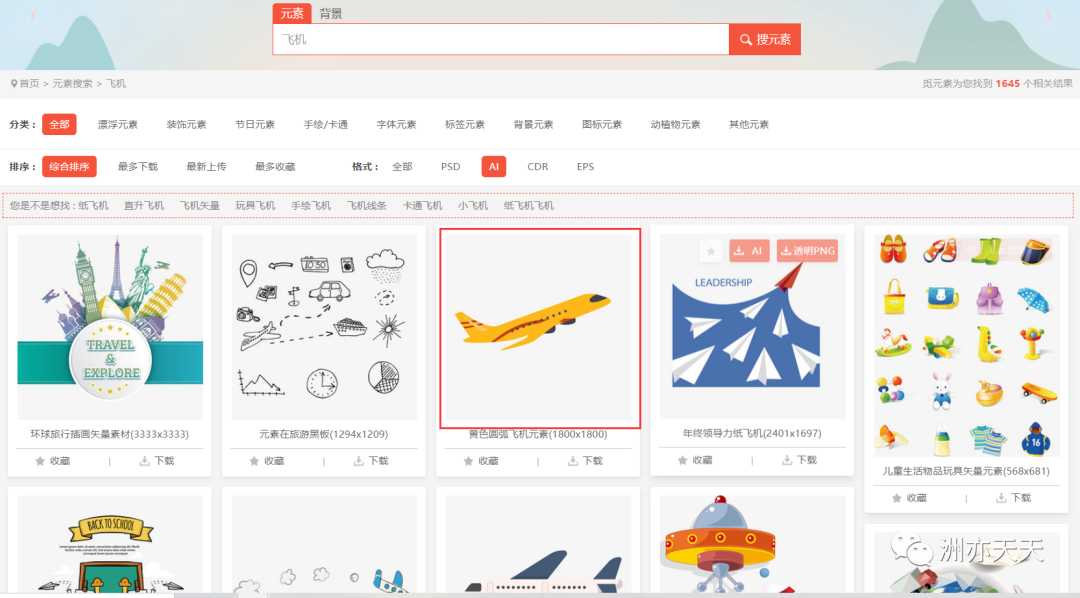 上图中的飞机图就是通过觅元素下载矢量图,之后更改颜色匹配的。