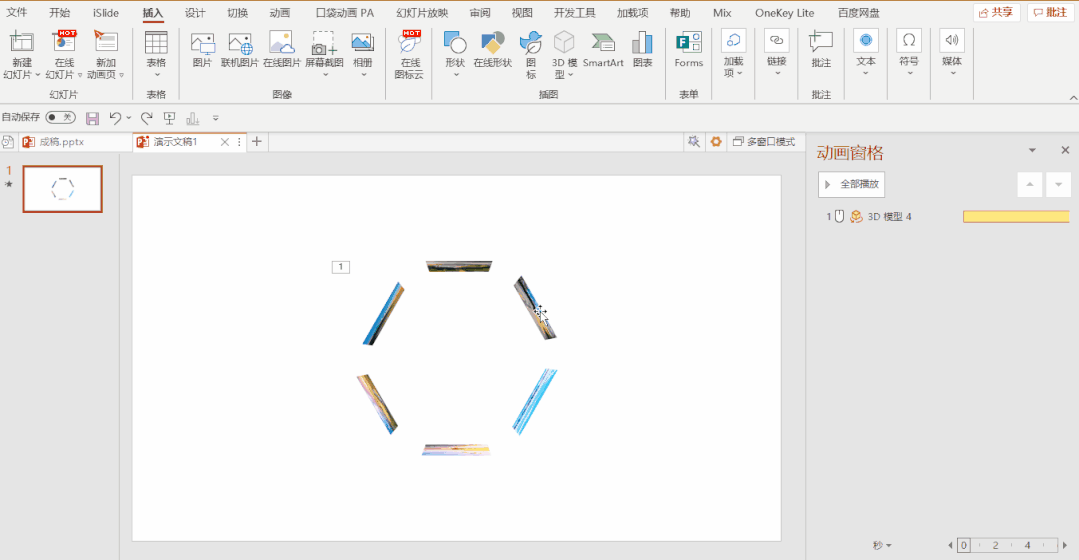 按照此方法,依次插入6张图片。每一张图片插入后,都记得将其制作为3D对象。