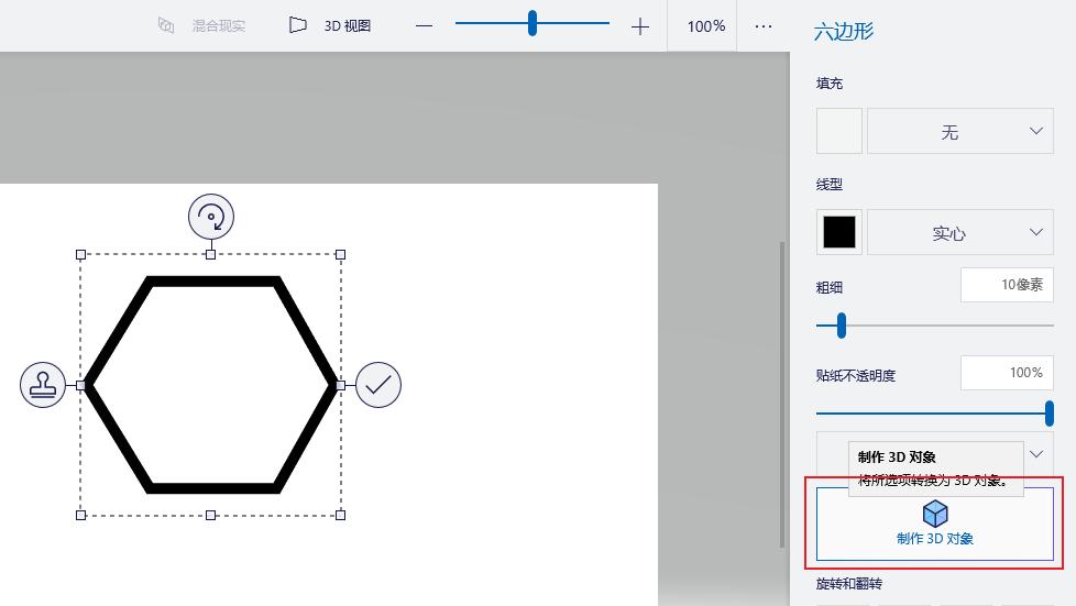 绘制之后,点击制作3D对象,将其转换为3D。这样方便我们后续单独选中它。