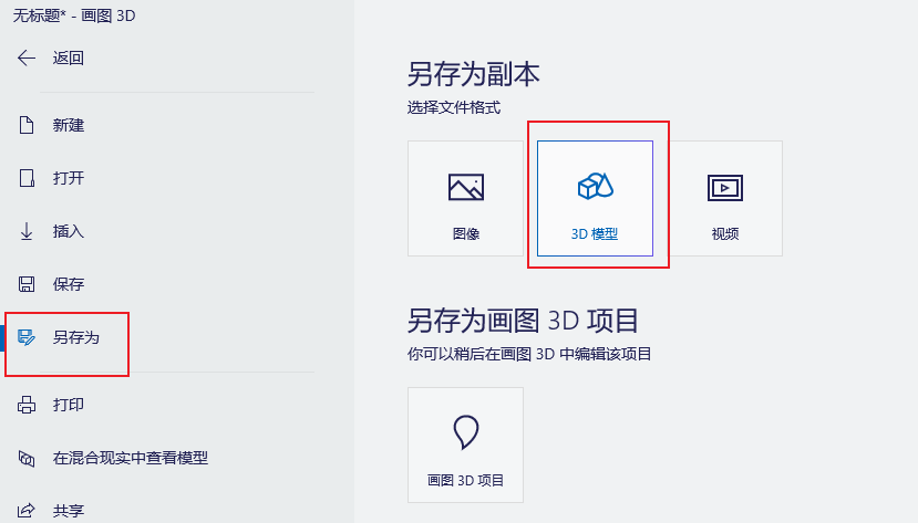 选择文件-另存为,保存为3D模型,保存为.glb格式