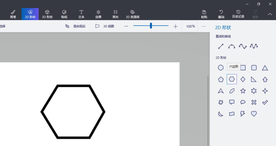 点击2D形状,选择六边形,按住Shift键绘制一个正六边形