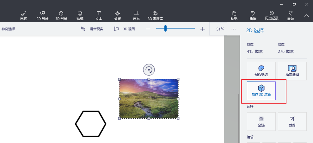 要注意,插入图片后,一定要先点击【制作3D对象】,否则你后面没办法单独选中该图片。