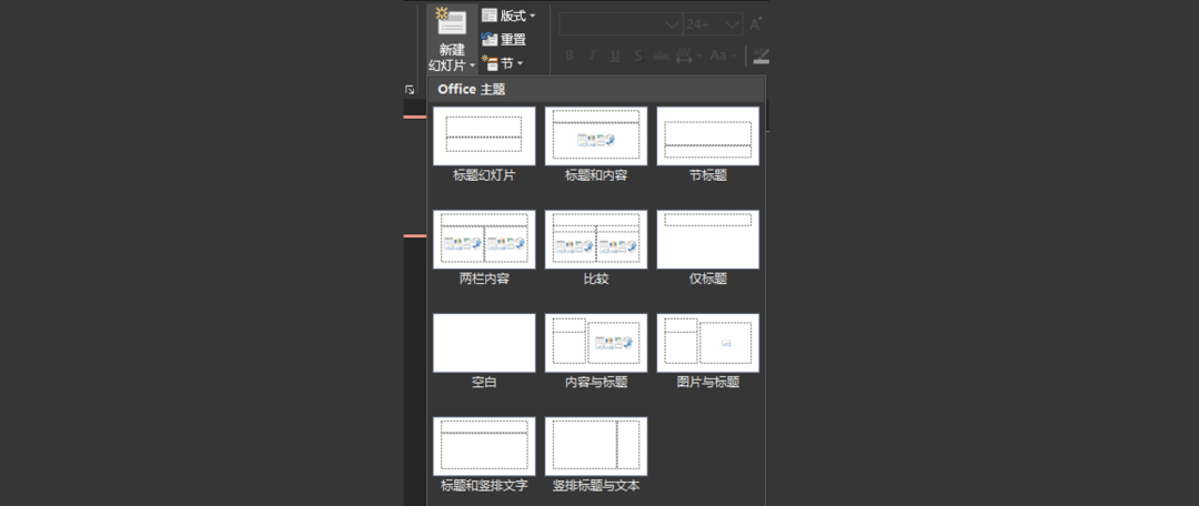 当我们关闭母版后,在新建幻灯片中,就会出现一个相同的「占位符版式