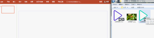 直接拖:像在文件夹中拖拽文件一样,也可以将图片、音频、视频等对象直接拖到幻灯片中