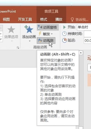 参照PPT制作之幻灯片中音频播放小技巧设置想要的音频播放方式后,动画格式刷将为你省下大把时间
