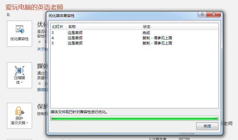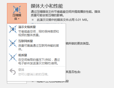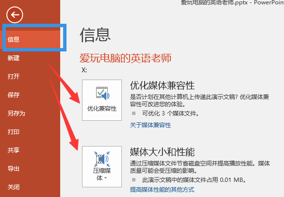 顶部→文件→信息→优化兼容性/压缩媒体: