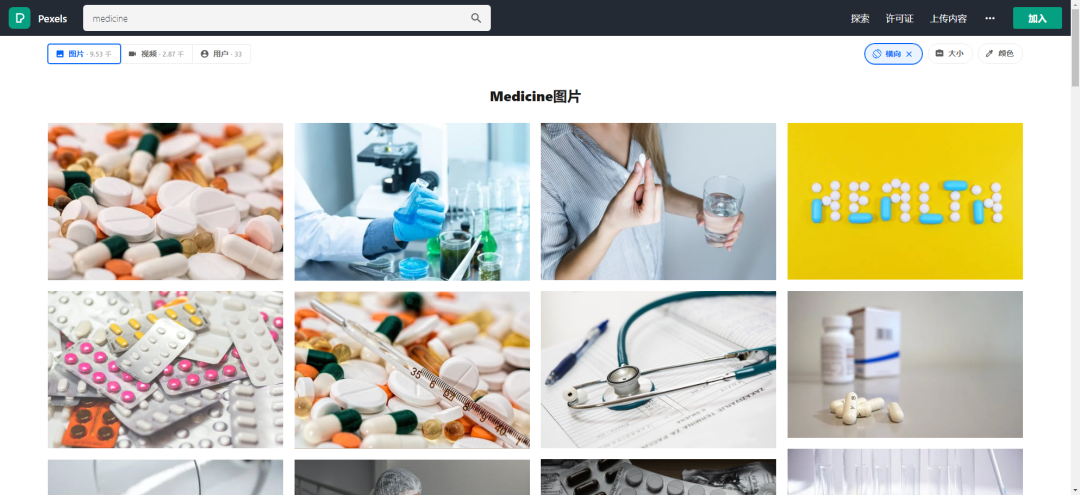 网站传送门:https://www.pexels.com搜索对应的英文单词即可快速检索到相应的内容(中文也可以直接搜索,但是不太精确)。