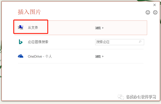 4、【从文件】找到图片所在位置后选中图片,点击【插入】