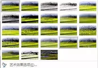 PPT中的艺术效果,就是给图片加一些特效,比如:铅笔灰度、铅笔素描、虚化、发光闪射、水彩海绵、蜡笔平滑等等。
