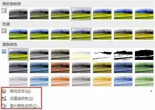 如果预设的这些选项中没有大家需要的,我们可以看到其中还有:其它变体、设置透明度和图片颜色选项。