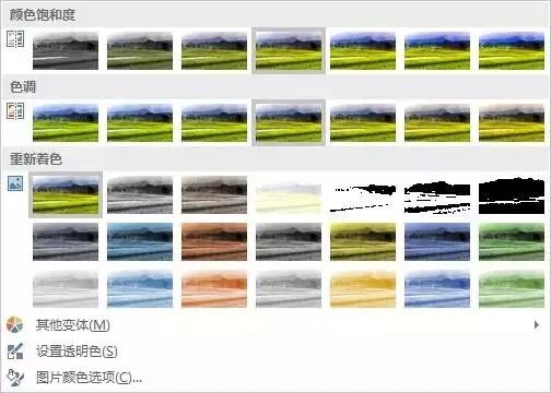 PPT中的"颜色"效果,相当于我们PS中的滤镜。