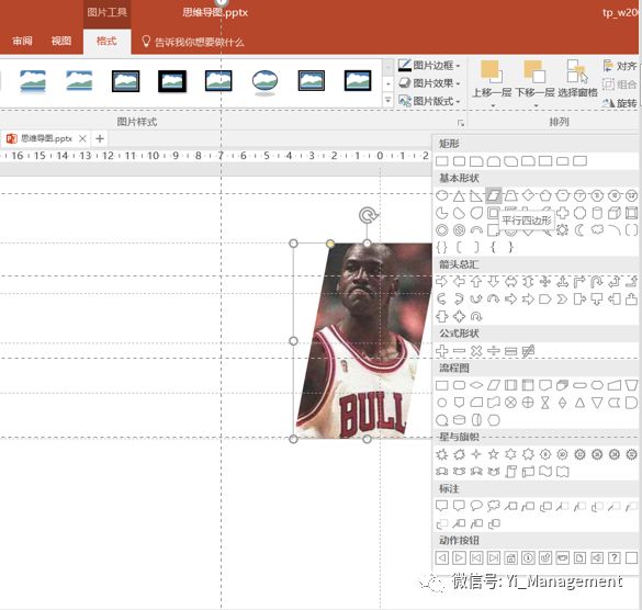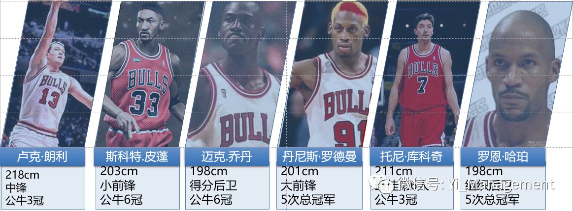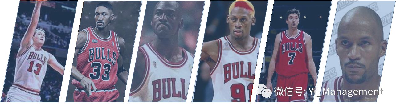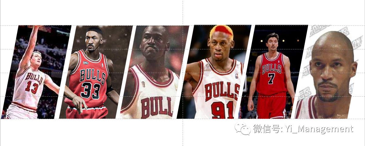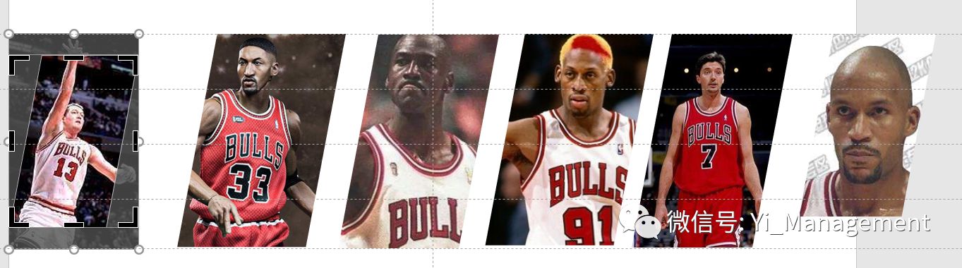 这时可以快速拷贝裁剪格式到其他图片。单击乔丹图片,按住“Ctrl+shift+C”键,释放后,单击其他图片,同时按住“Ctrl+shift+V”,快速对其他图片进行等比裁剪。得到裁剪样式后,对其他图片分别单机等比裁剪,拖动,即可得到如下图片。