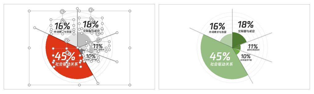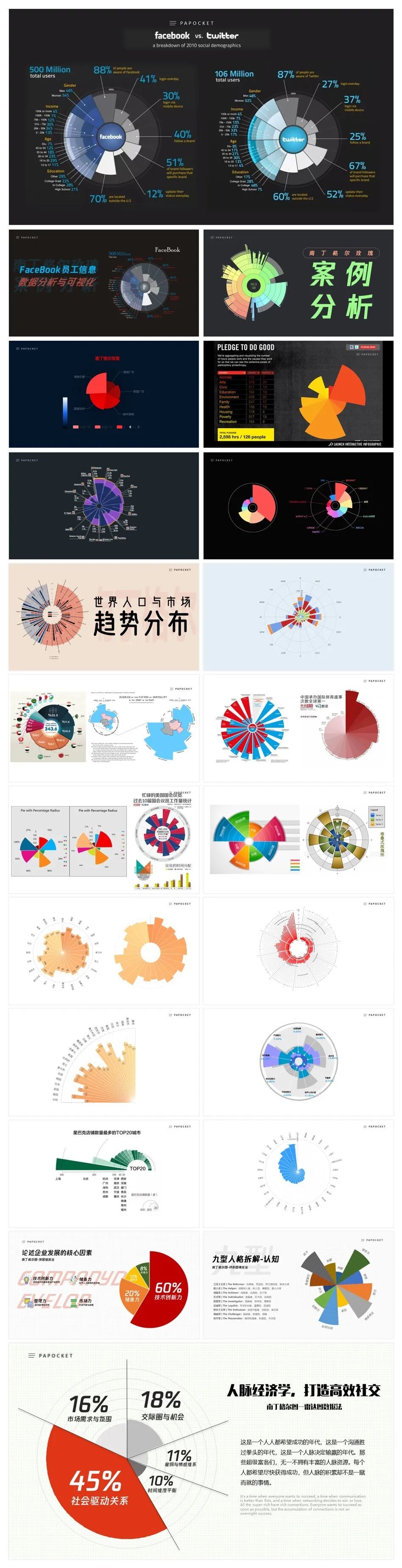 南丁格尔作为非Office标准图表,是一个是很实用、且很高级的专业图表,在我们日常的PPT设计中用的也比较多。利用这南丁格尔的半径切分,既能够有较强的设计感,还能以最直观的方式去呈现数据比较的意义。南丁格尔玫瑰图,不愧是为生命致敬而生的图表。