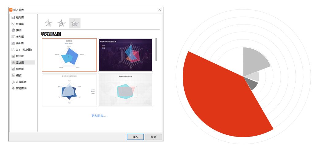 或许看到前面介绍的,你会去PPT图表中直接就去使用,不好意思,这个图表原则上不属于Office标准图表,所以我们需要借助一些“小技巧”来实现这类图表的制作。