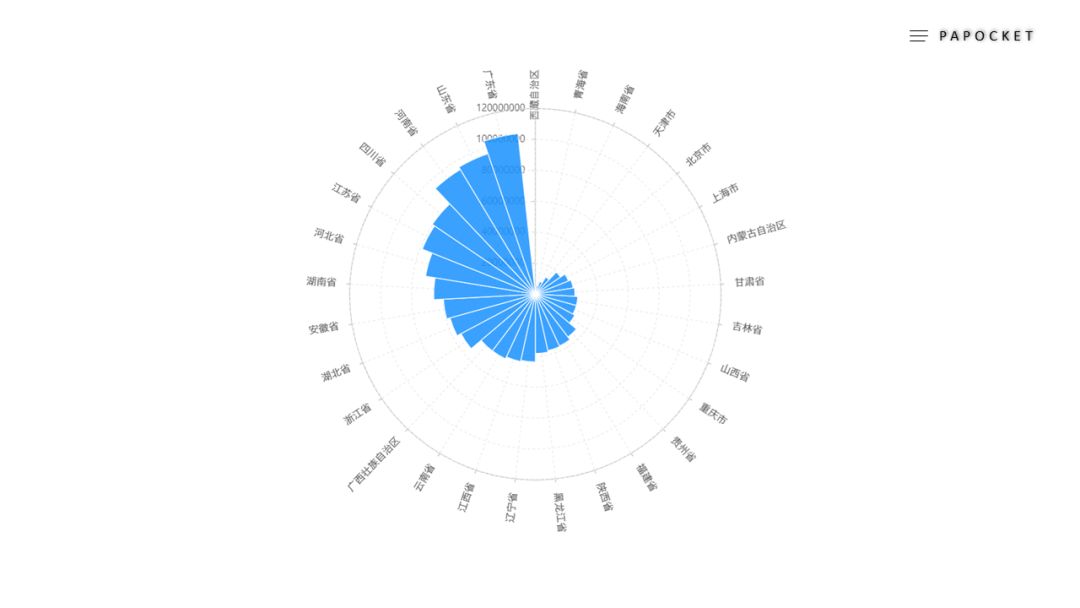南丁格尔玫瑰图,又名为极区图,将柱图转化为更美观饼图形式,是极坐标化的柱图。不同于饼图用角度表现数值或占比,南丁格尔玫瑰图使用扇形的半径表示数据的大小,各扇形的角度则保持一致。