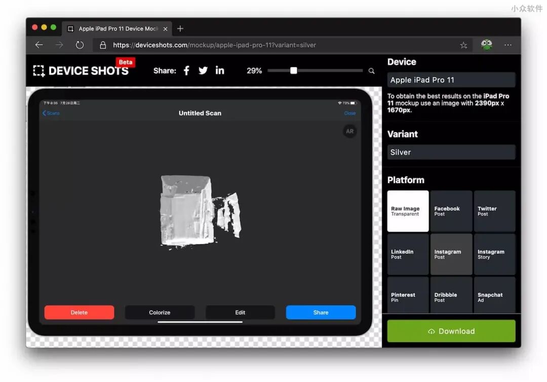 Device Shots 是一款在线制作带壳截图的工具,只需要将截图拖拽到网页上,就能套上外壳,支持多品牌手机、平板、电脑、电视、显示器、智能手表等设备。