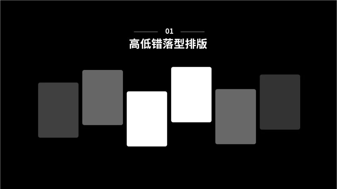 通过图片尺寸的递进变化,来形成对称的视觉感受,如果你觉得上面的错落型排版不够严谨,运用这种对称式的排版方法既不会太出众也不会太普通