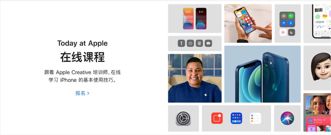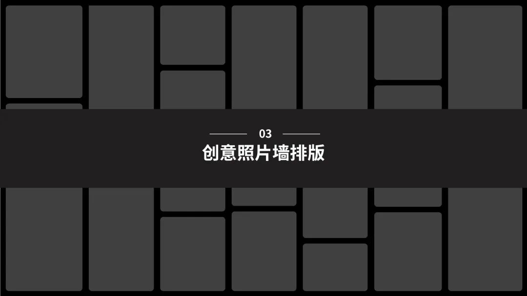 如果是尺寸大小不统一的截图,又或者需要排版的截图太多了,那么我们就用下面的创意照片墙排版;如果你的页面上是尺寸大小不一的截图又或者是需要排版的截图太多了,我强烈建议你采用照片墙展示版式,这种方法在苹果的官网和发布会上常常被采用