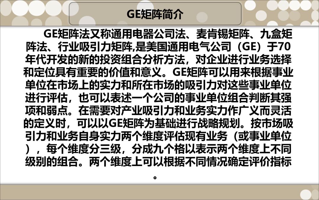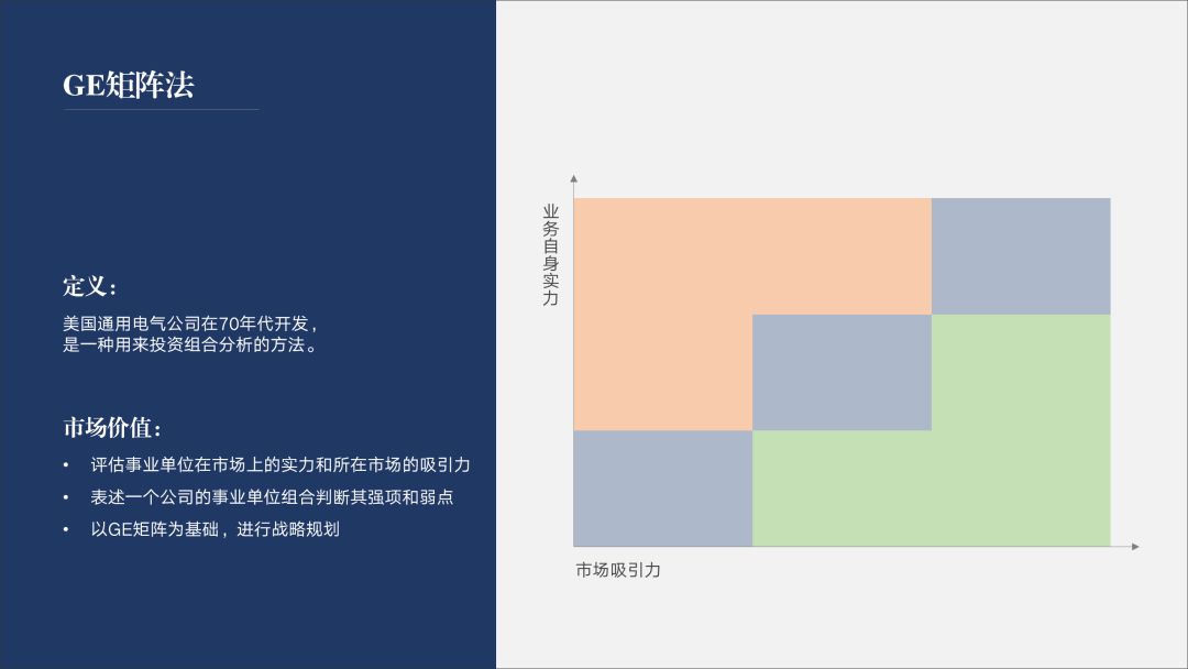 为了让观众先来看 GE 矩阵法的定义和市场价值,所以,我加深了这部分内容的背景。
