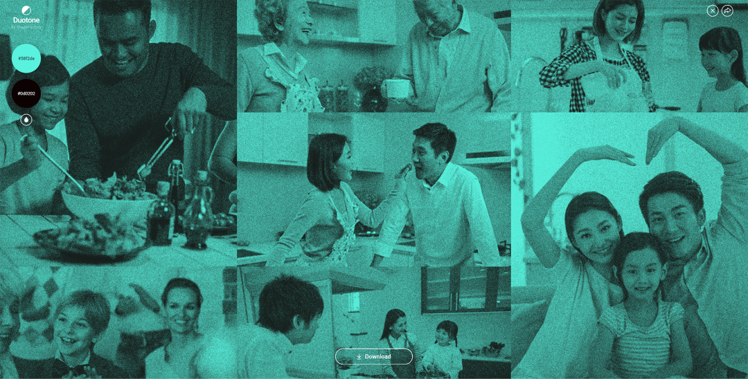 把双色调的两个颜色值,输入到左上角的圆形内,即可实现对应的效果: