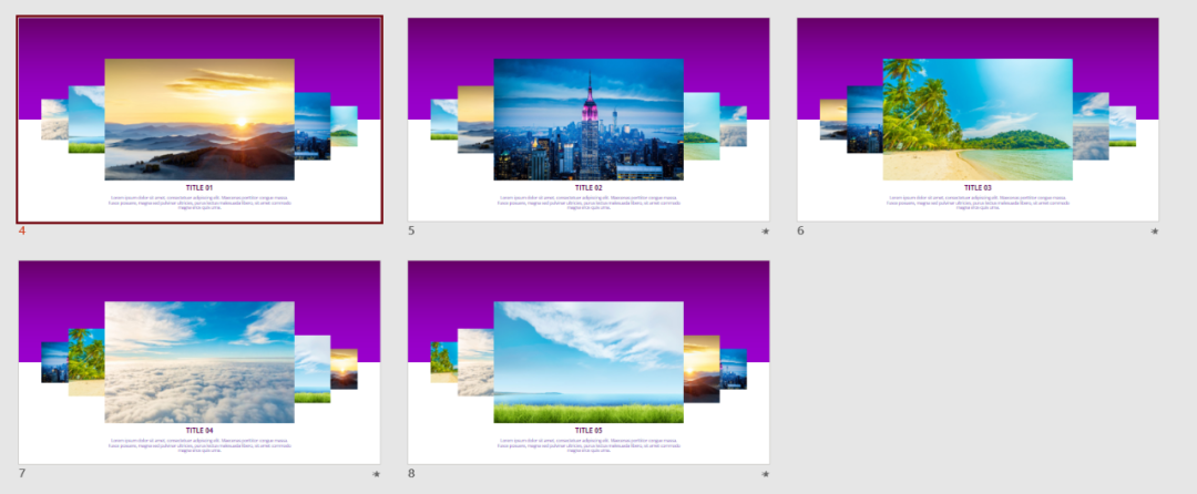 3.复制一页,将中间图片右侧的图片放大,并移到中间位置,其余图片依次调换一下位置。