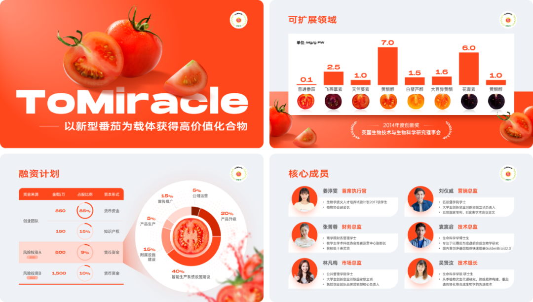 根据内容以及文档的命名,这应该是一份大学生创业比赛使用的 PPT。老规矩,还是从中挑选 4 张典型页面: