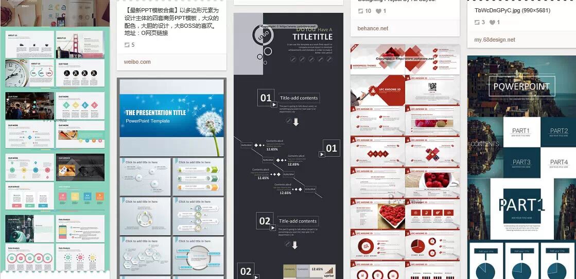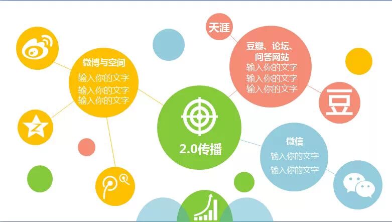 科技、互联网公司在做PPT时似乎尤其喜欢使用小图标。颜色单一、线条简单的小图标使得PPT的内容以扁平图像的方式得以直观呈现,符合现今图像文化比语言文化更加占据优势的现状,同时避免了图片的颜色繁杂、风格难以统一的缺点。PPT显示出利落的干净感,协调、专业但不沉闷。我们在制作PPT时也可以使用这种方法。比如:在展示“数据统计”部分时,你可以在“数据统计”的文字前加一个饼图或者柱状图的图标,在描述“被调查者人数”时,可以放一个人像的图标。这些图标都能比较容易地在一些素材网站下载到。当然,真正麻烦的是,你要合理搭配图标与文字含义,不能挂羊头卖狗肉。我整理了50多页的常用图标素材,点击“阅读原文”可以下载。这些图标都是矢量图形,可以任意缩放,改变填充颜色和线条颜色。