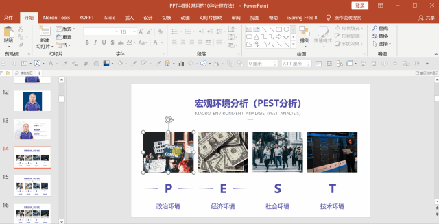 组合工具在PPT找中处理图片也是非常不错的方法,比如下面这页PPT。