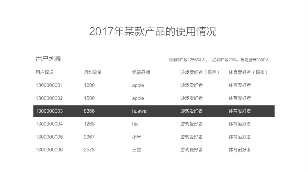 仅仅在标题的位置上,有两条灰色的虚线。其余位置都是靠表格当中的留白来进行区分。