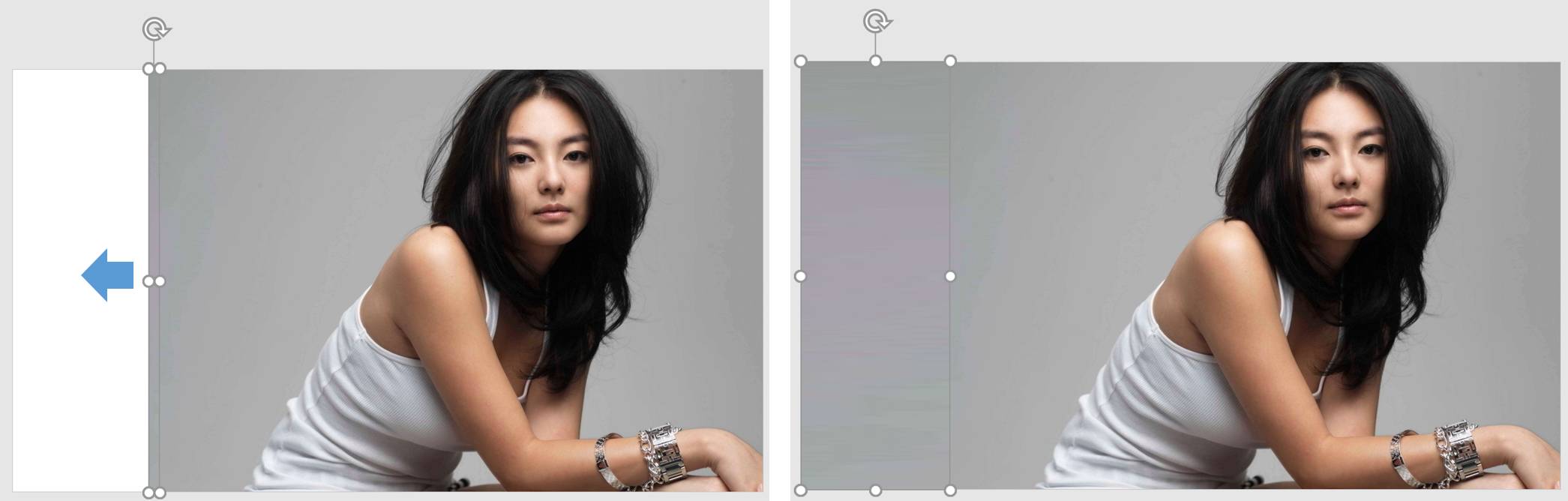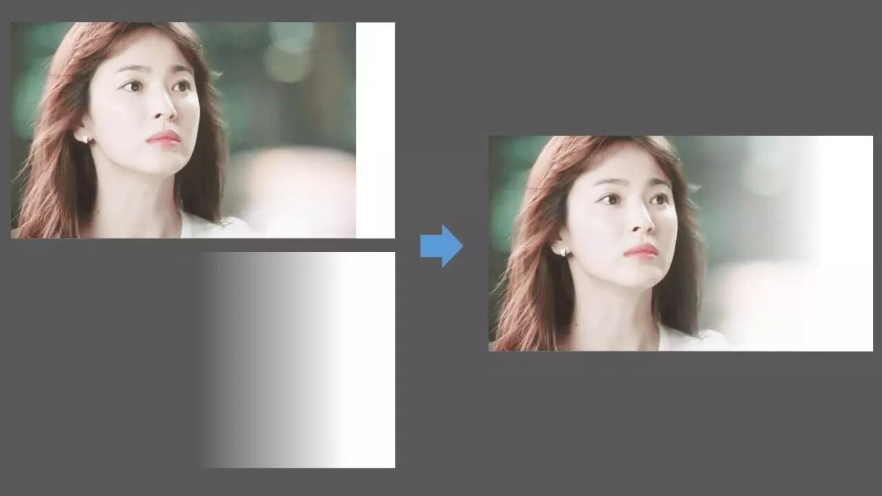遮盖法简而言之就是使用渐变矩形将图片和背景之间的交界给抹去,造成图片到背景的自然过渡。使用遮盖法时请注意图片原本的质感和风格,进而确定应该是用黑色渐变矩形还是白色渐变矩形。