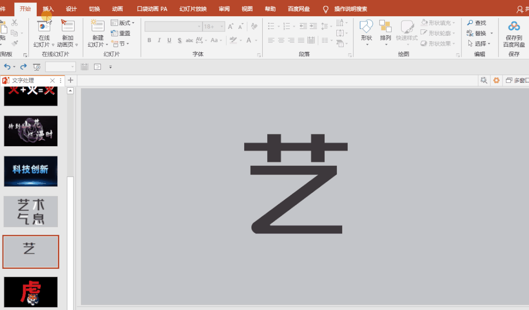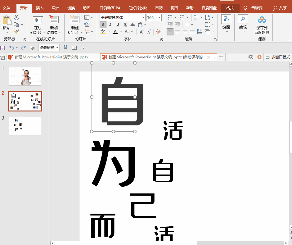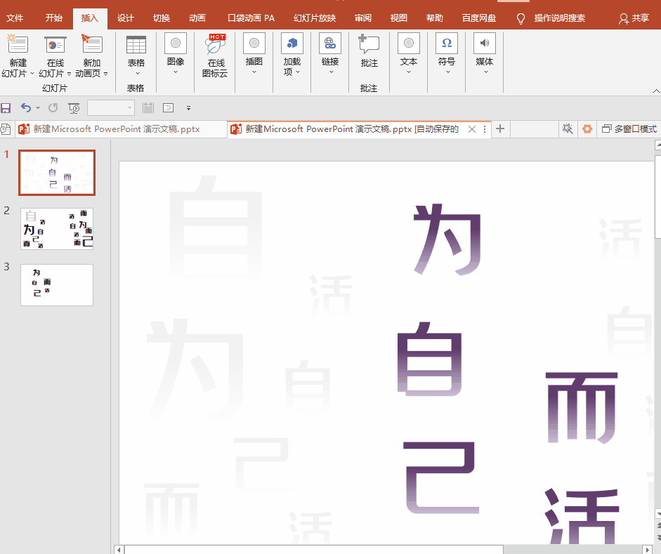 1.PPT中插入文本框,输入文字,然后将文字拆分成单字。