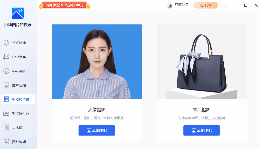 这里给大家强烈安利一款图片转格式神器【迅捷图片转换器】,虽然该软件的核心功能是图片转格式,但它“不务正业”的【抠图换背景】功能,也是好用到我要为它疯狂打Call!