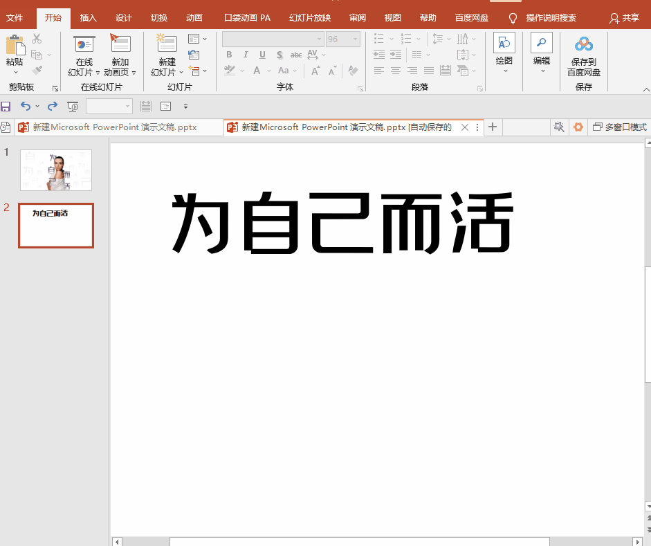 4.最后在PPT中插入透明人物素材,然后插入文本框输入文字,调整文字为渐变,然后将文字置于图片底层或者顶层,调整下角度,最后就搞定了。