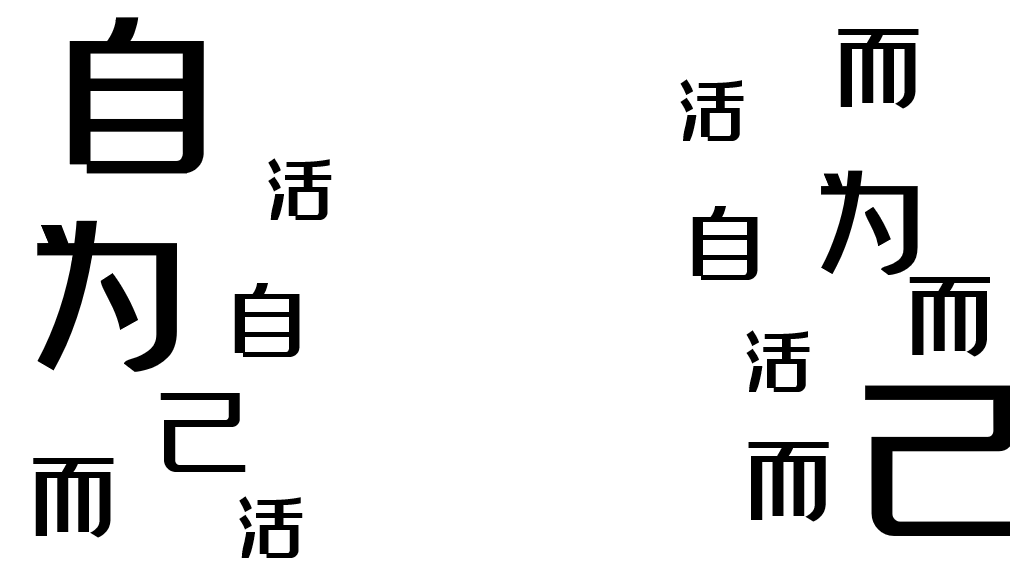 2.接着复制多个文字,然后调整文字的大小,让文字以大小组合的形式左右排版;