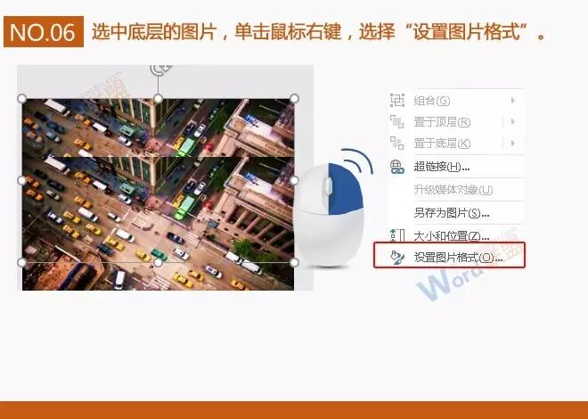 6、选中底层的图片,单击鼠标右键,选择“设置图片格式”。