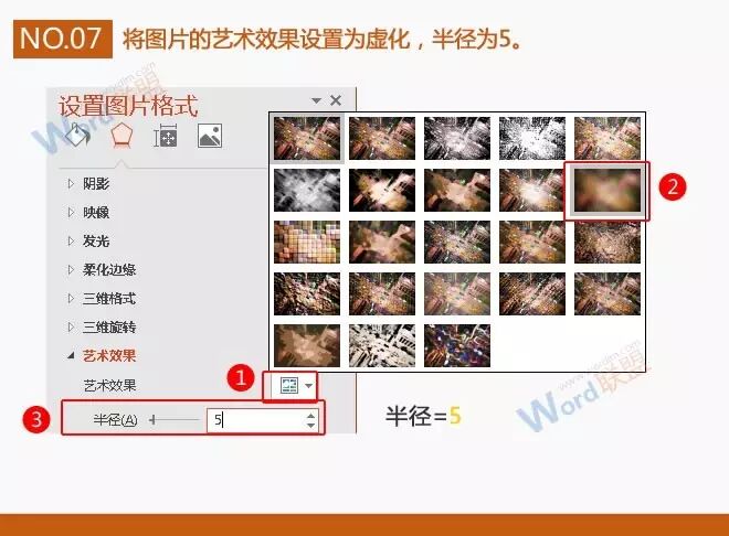 7、将图片的艺术效果设置为虚化,半径为5。
